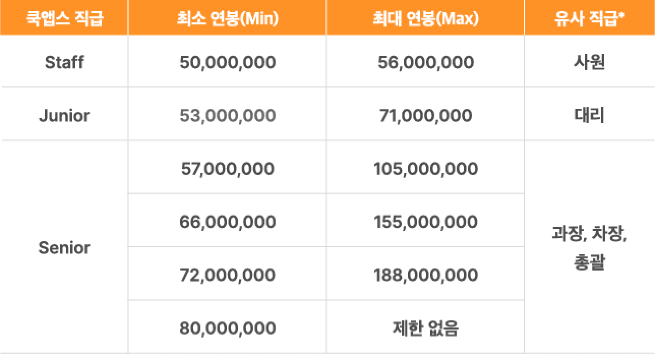 [쿡앱스 연봉 테이블 (쿡앱스 제공) ]