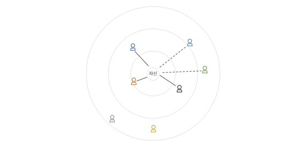 - 자신과 팀원 사이에 어떤 선을 그릴 수 있는가? (연결 강도에 따라 실선, 점선, 무선 등)