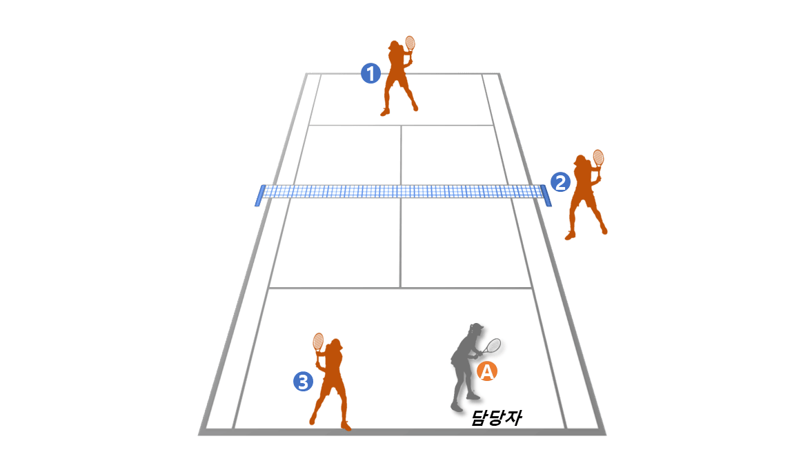 상호 간에 에너지 흐름이 느껴지시나요? 테니스 코트로 비유를 해봅니다. 아래 그림에 테니스 코트 Ⓐ라는 곳에 피드백을 ‘받으러’온 담당자(회색)가 서 있습니다. 개선을 위한 피드백을 ‘주고 있는’ 당신(리더)은 보통 코트의 위치 ①, ②, ③ 중 어디에 서서 피드백을 ‘주고’ 있나요?