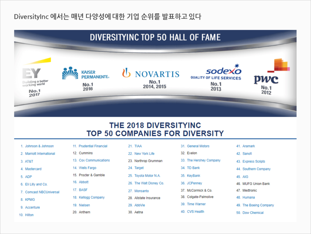 산업이나 기업 규모와 상관없이 다양성을 조직의 핵심가치와 EVP로 내세우는 기업들이 늘어나고 있다. 그 이유는 간단하다. 다양성이 조직 성과를 증대하고, 인재들 또한 다양성이 존중받는 기업에서 일하고 싶어하기 때문이다.